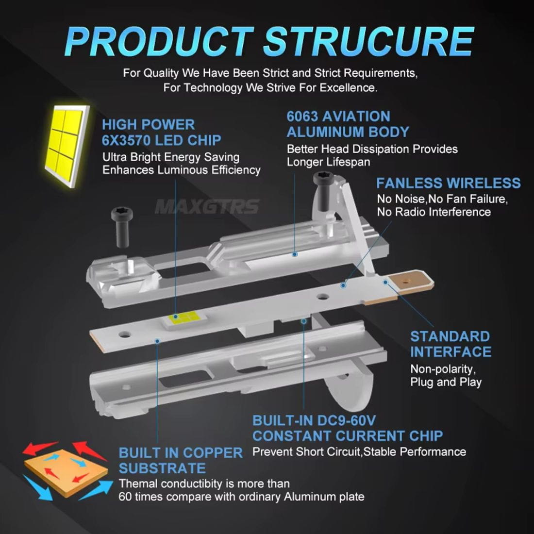 Żarówki wyposażone są w pasywny system chłodzenia, oparty o: