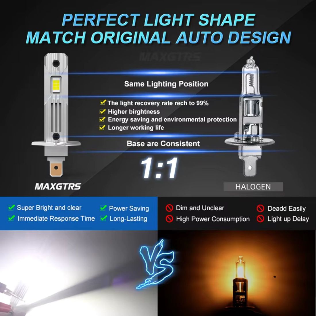 MAGALL ONE TO ONE H1 to żarówki LED zaprojektowane w technologii 1:1, czyli z zachowaniem identycznych wymiarów i kształtu jak klasyczna żarówka halogenowa H1.