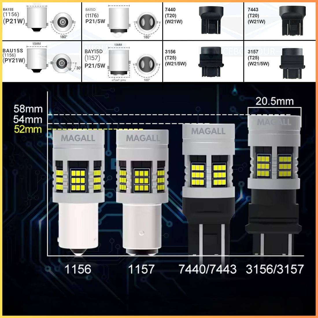✅Typ trzonka: BA15S/1156/P21W - idealne jako żarówki cofania oraz światła do jazdy dziennej.