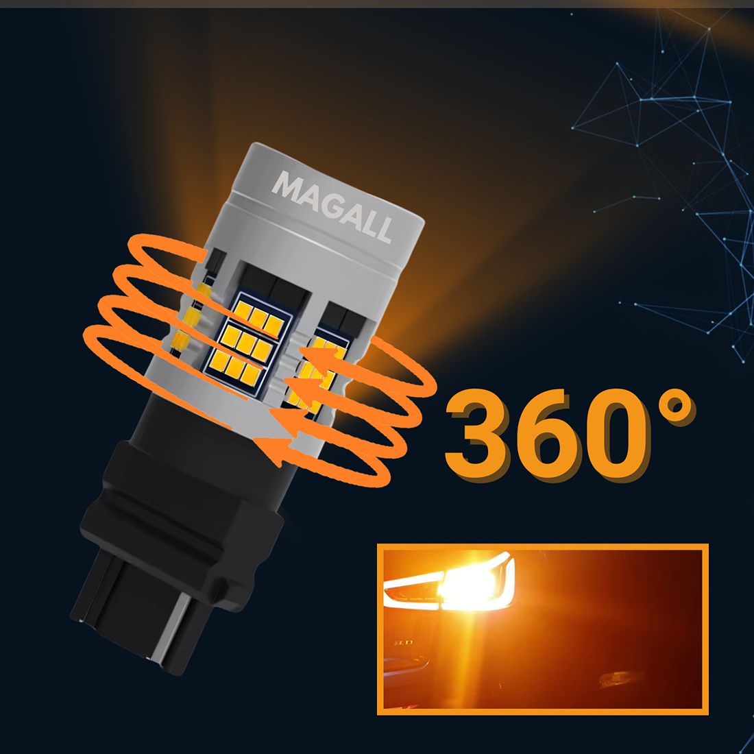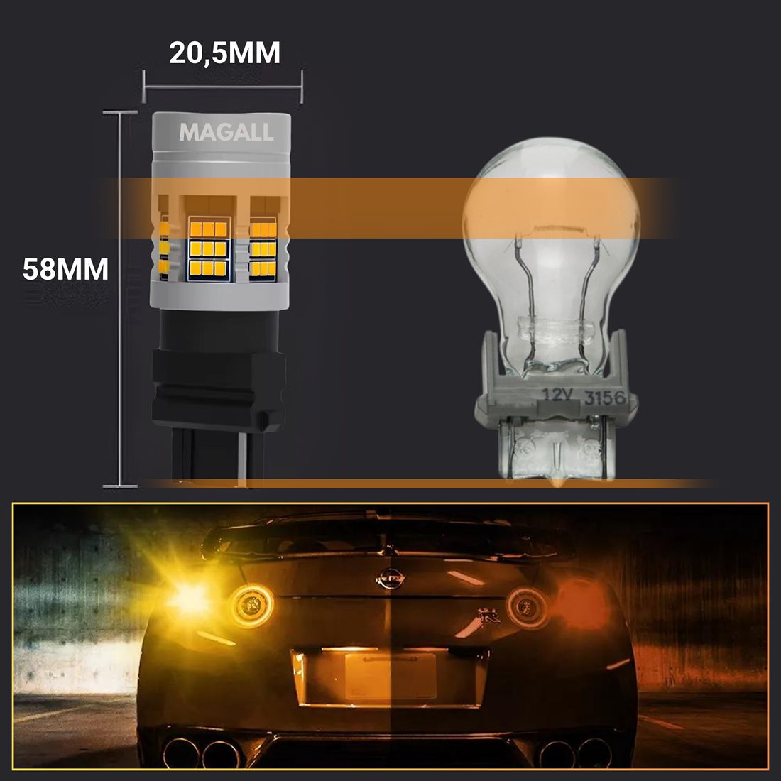 ŻARÓWKA LED P27W 3156 MAGALL FAN-CAN POMARAŃCZOWE CANBUS KIERUNKOWSKAZ 12V