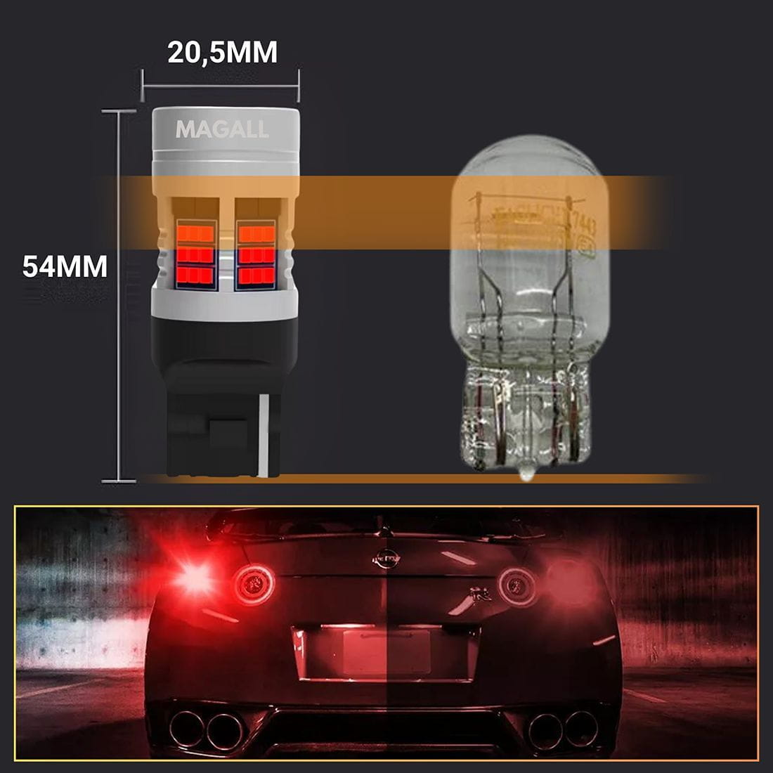 ☝️Światła stopu (stop/tail light): Czerwone żarówki W21W T20 7440 są powszechnie stosowane jako światła stopu w tylnych reflektorach pojazdu. Kiedy naciskasz pedał hamulca, czerwone światło stopu świeci się, sygnalizując kierowcom jadącym za Tobą, że zatrzymujesz się lub hamujesz. Jest to kluczowe dla bezpieczeństwa na drodze.