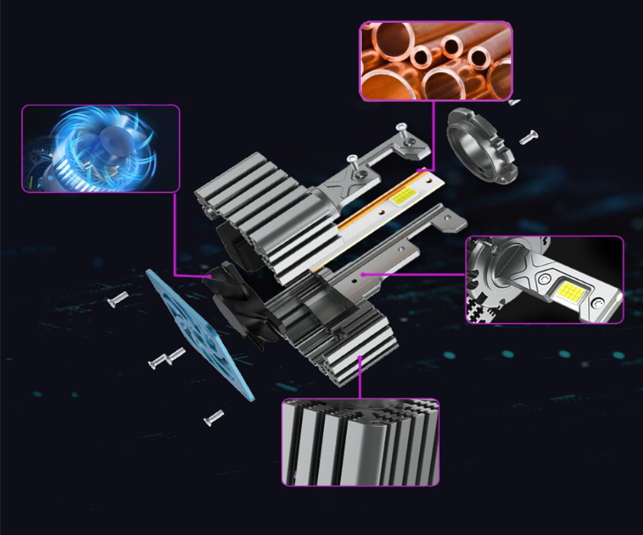 Wyciszony Wentylator Chłodzący: Żarniki wyposażone są w wyciszony wentylator chłodzący z łożyskiem kulkowym, który obraca się z prędkością 15 000 obr./min. To rozwiązanie zapewnia efektywne chłodzenie i minimalizuje hałas, co przekłada się na dłuższą żywotność i cichą pracę systemu oświetleniowego.
