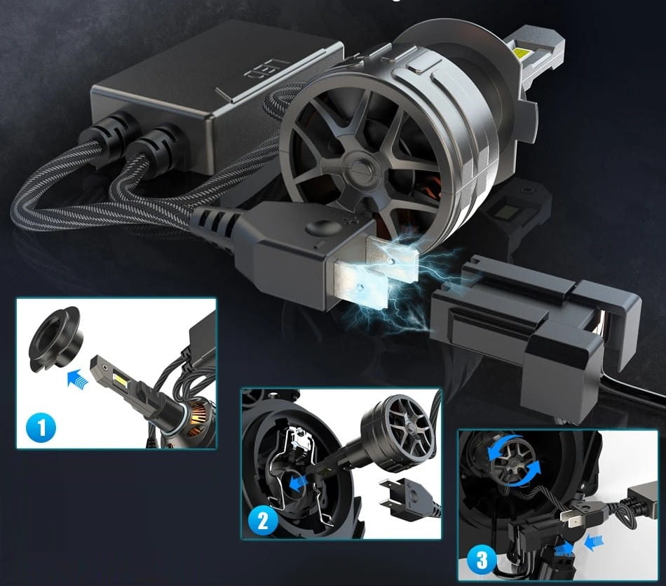 Montaż żarówki LED MAGALL KRONOS zalecany jest wyłącznie do samochodów, które umożliwiają instalację żarówek o podanych wymiarach. Należy zwrócić uwagę na dostępną wolną przestrzeń w budowie reflektora, aby zapewnić odpowiednie chłodzenie. Zalecamy również unikanie używania adapterów, aby zagwarantować prawidłowe działanie żarówki. Oznacza to, że są przeznaczone do reflektorów w których żarówka jest instalowana bezpośrednio do reflektora następnie zabezpieczona zapięciem (sprężyną) a na końcu podłącza się wtyk zasilający.