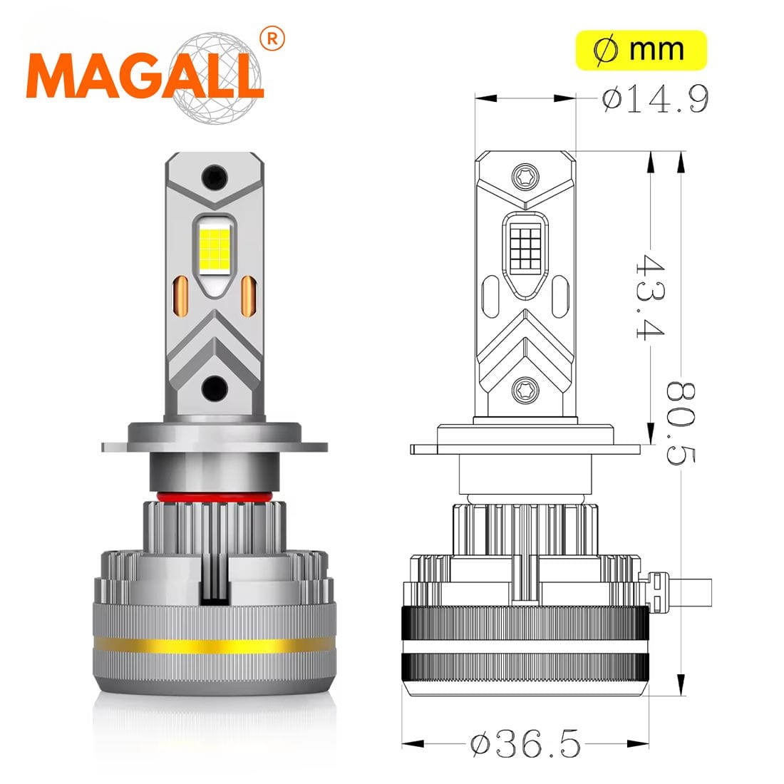 Montaż żarówki LED MAGALL LUCYFER zalecany jest wyłącznie do samochodów, które umożliwiają instalację żarówek o podanych wymiarach. Należy zwrócić uwagę na dostępną wolną przestrzeń w budowie reflektora, aby zapewnić odpowiednie chłodzenie. Zalecamy również unikanie używania adapterów, aby zagwarantować prawidłowe działanie żarówki. Oznacza to, że są przeznaczone do reflektorów w których żarówka jest instalowana bezpośrednio do reflektora następnie zabezpieczona zapięciem (sprężyną) a na końcu podłącza się wtyk zasilający.