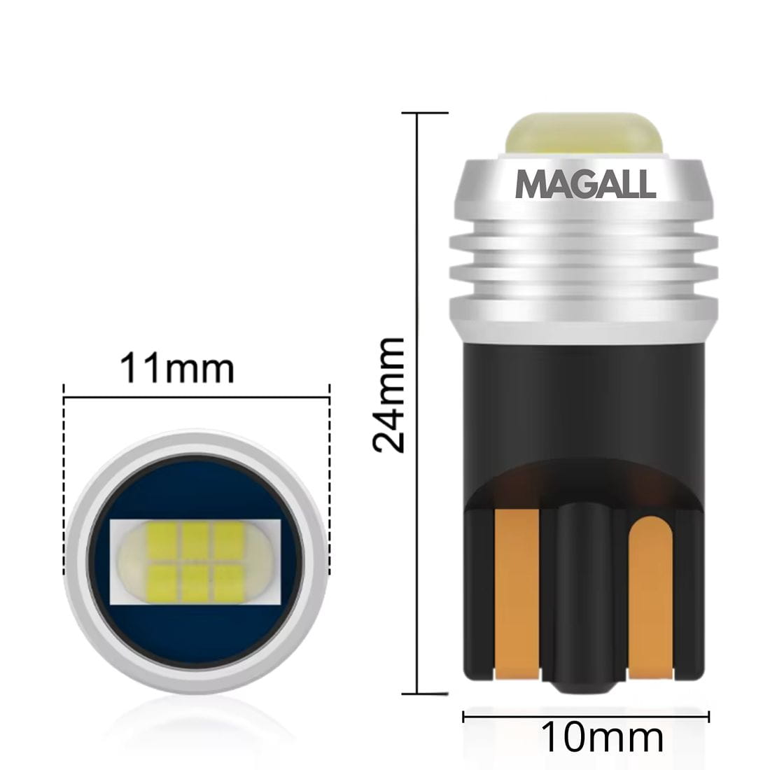 Żarówki LED W5W MAGALL z diodami 6SMD 3030 emitują intensywne światło o jasności 400 lm i temperaturze 6500K.